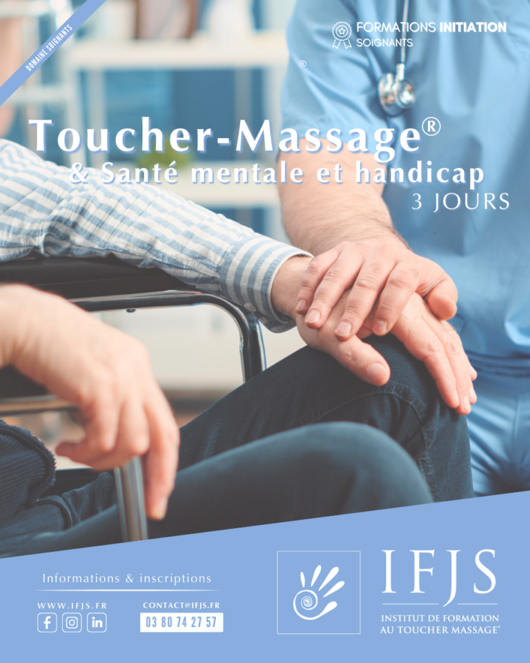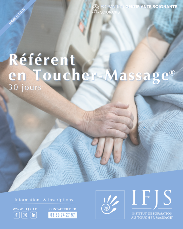 L’IFJS intervient en intra dans les établissements de santé et médico-sociaux (hôpitaux, cliniques, EHPAD, structures spécialisées…) pour former les soignants au toucher-massage et au toucher relationnel.